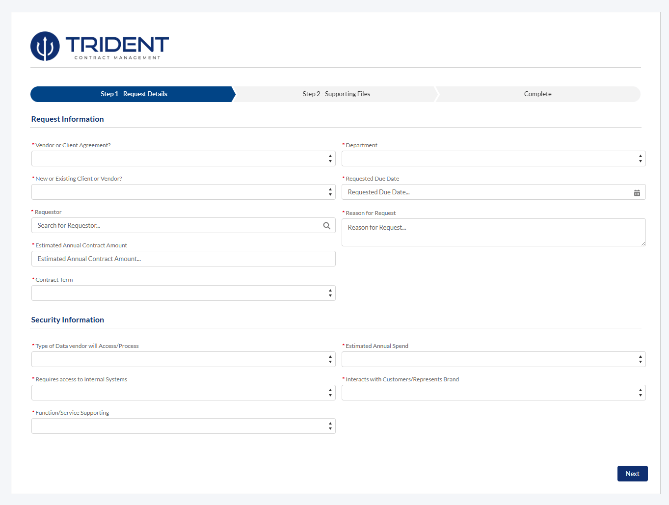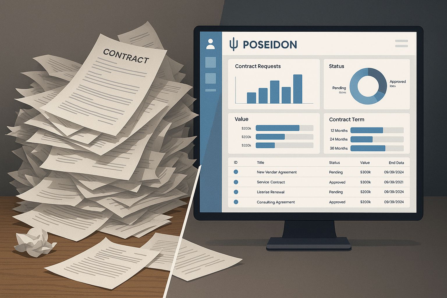 Poseidon changes that by giving teams one standardized intake form that captures everything needed to evaluate, approve, and track contract requests. It’s more than a form. It’s the foundation of operational control.